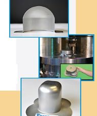 In the computer-controlled Deep Draw process, the downward-acting bladder primarily acts to hold the material during pressurization, as the tool is extended atop a hydraulic punch cylinder. This draws the material into the bladder and allows it to flow as needed.